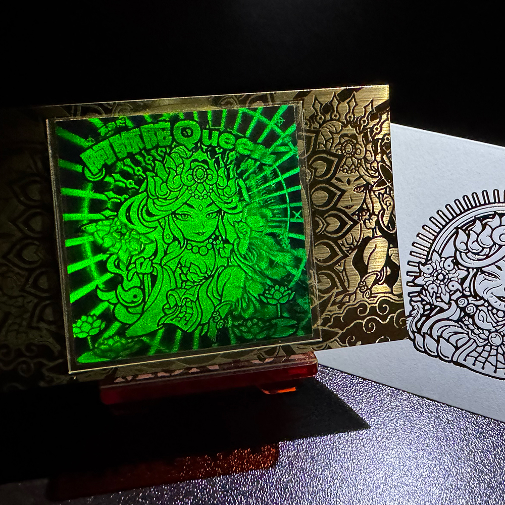 Q-10が抜けていた為、新たに作り単品販売する事になりました。 トキメキ!妖怪鬼退治第三弾を彷彿させる仕様となっています。 グリーンレイク箔×6号金箔×偏光(ブルー→ピンク)のスペシャル仕様