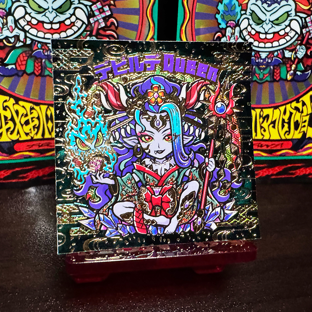 デビルデ陰摩羅鬼と同じ技術でさらに高みを目指して作られた「ハジケテモドル」。 48㎜×48㎜の世界では情報量が多すぎました。 ゆっくり・・ゆっくり傾けてみてください。 本編発売前に販売予定でしたが、2枚目のQueenの情報公開をせず販売する事にしたのでお蔵入りしていた幻のシールがついに登場。 ※即出のキャラクターの為、特価になります。 再販ございません。